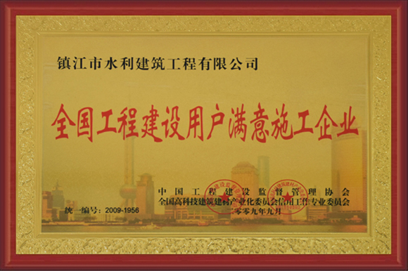 公司被評(píng)為重合同守信用企業(yè)、江蘇省水利安全生產(chǎn)標(biāo)準(zhǔn)化二級(jí)單位、AAA級(jí)資信企業(yè)、誠(chéng)信示范企業(yè)、全國(guó)工程建設(shè)用戶(hù)滿(mǎn)意施工企業(yè)。